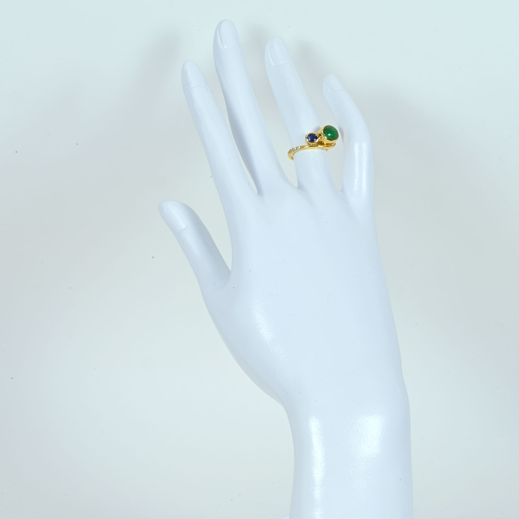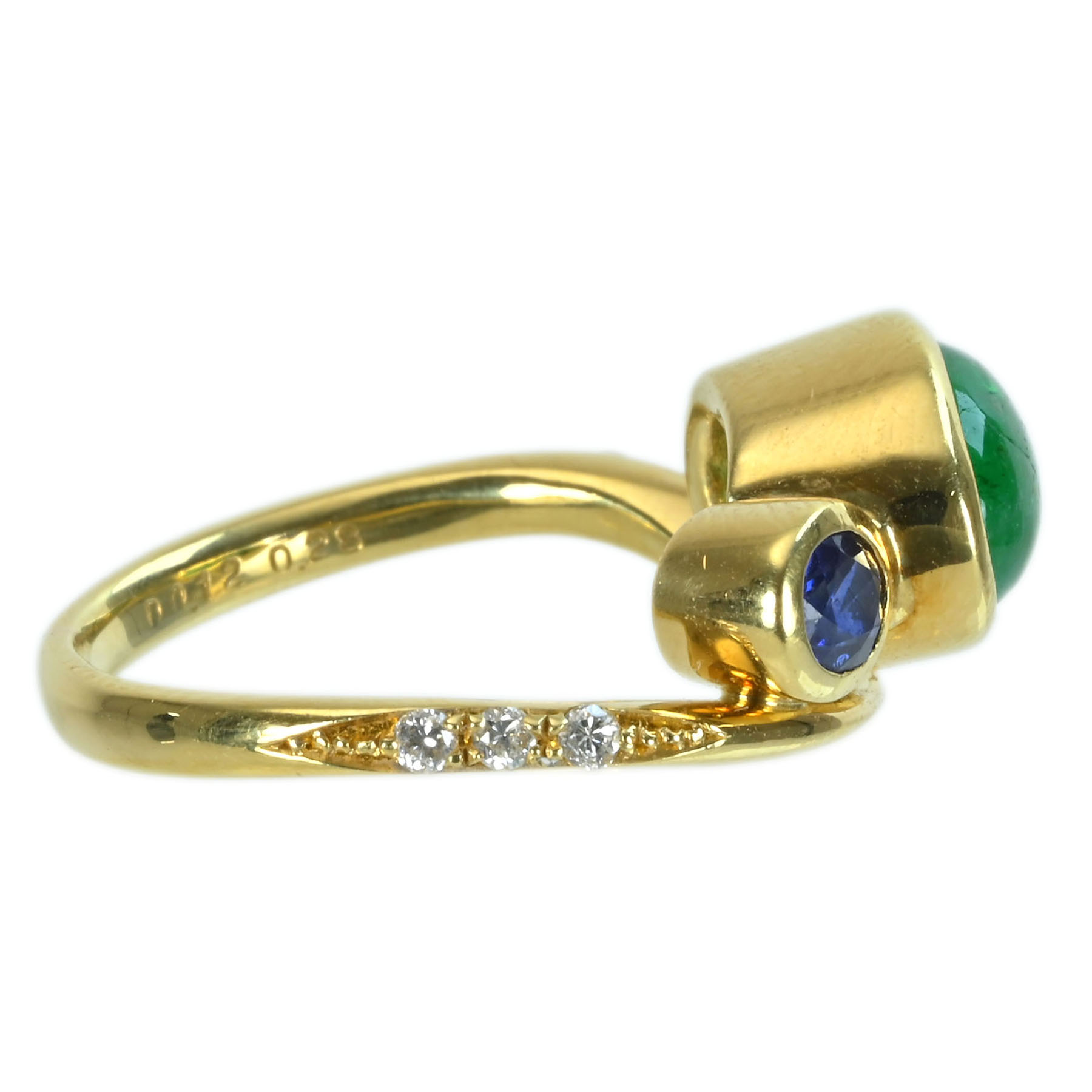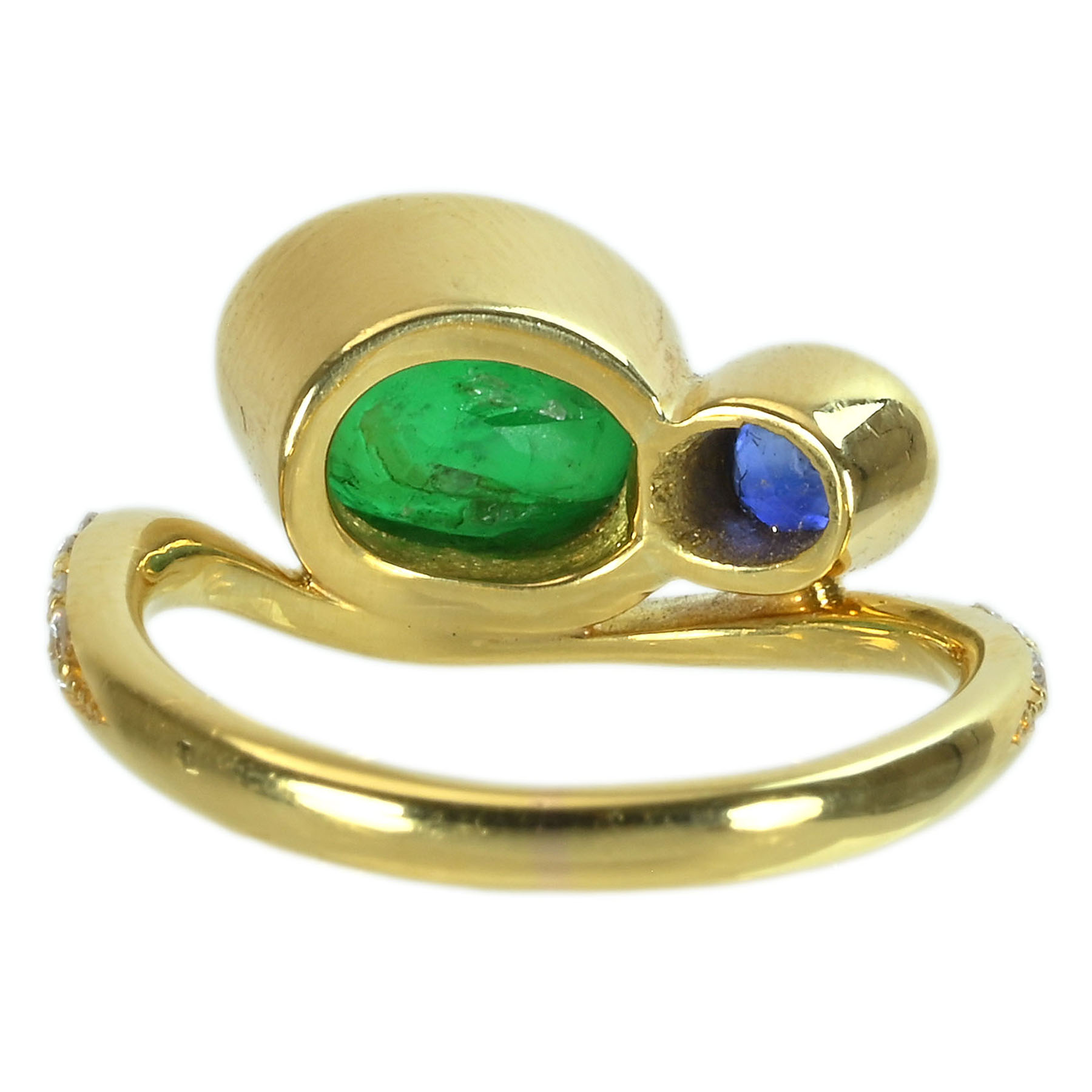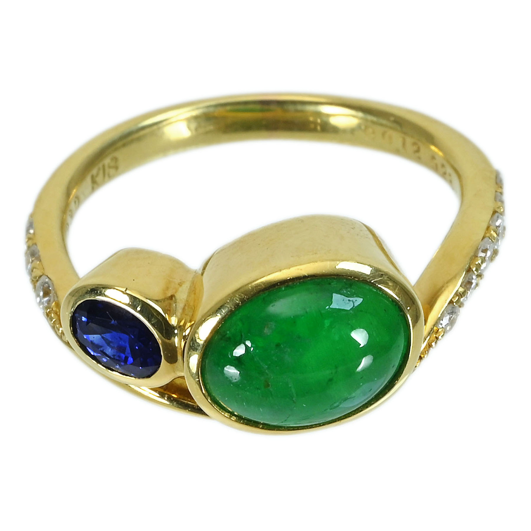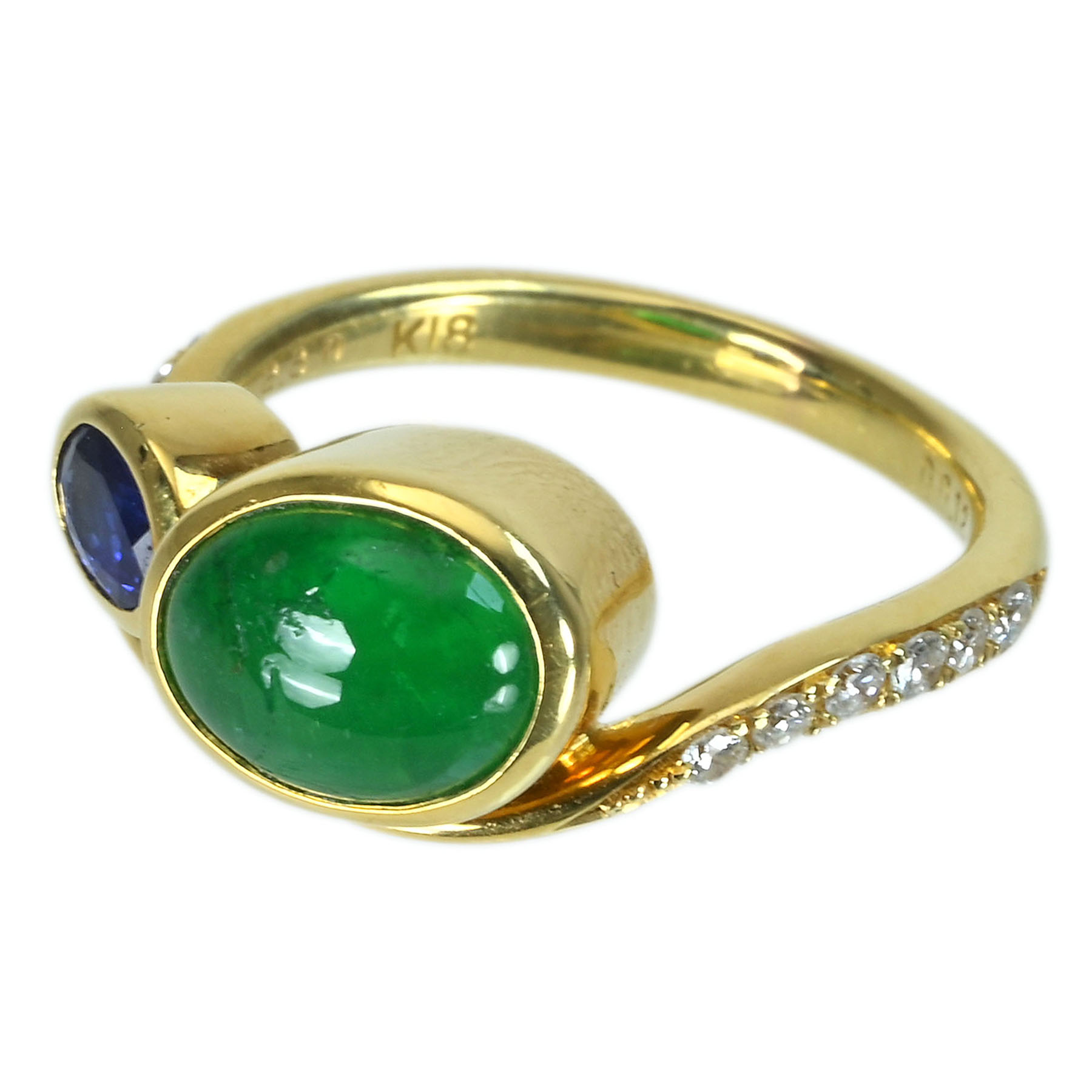 エメラルド&サファイアリング K18YG E2.30ct S0.28ct D0.14ct