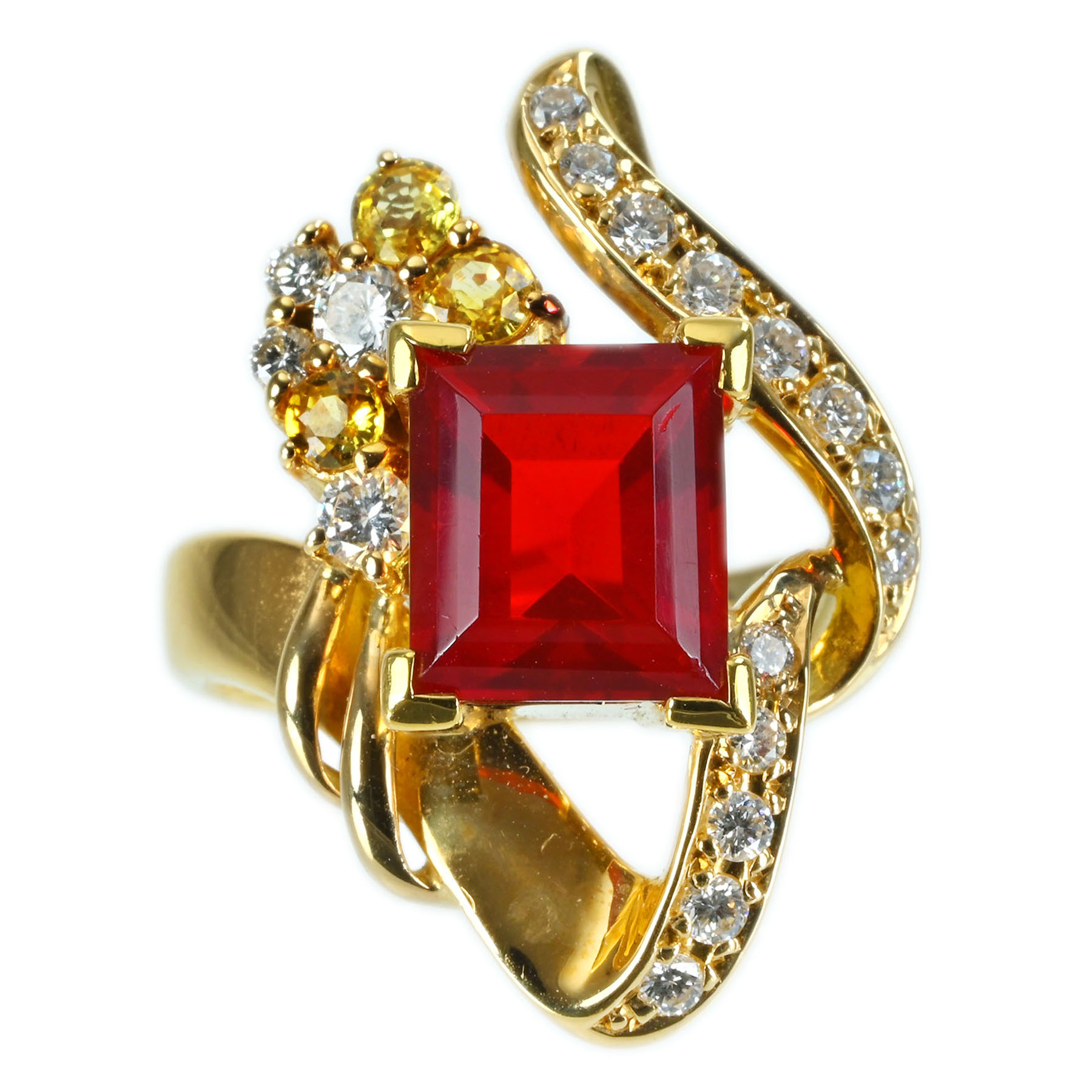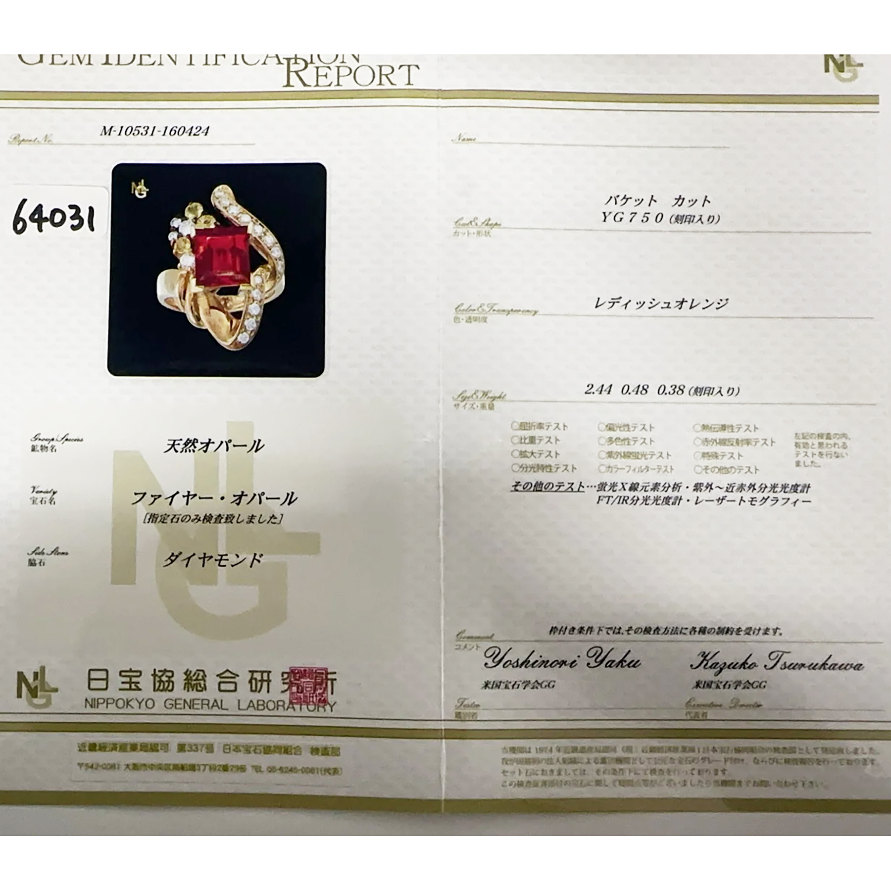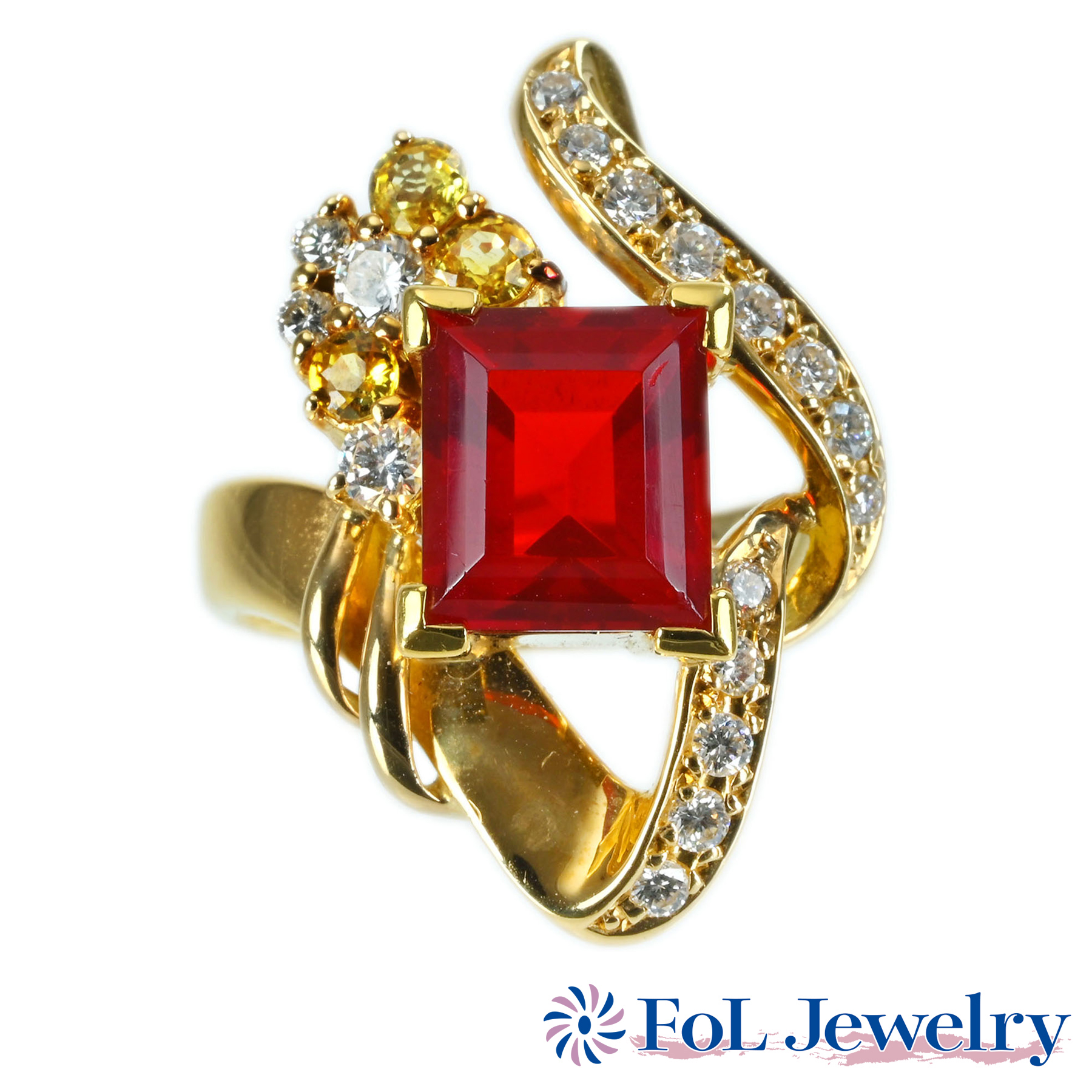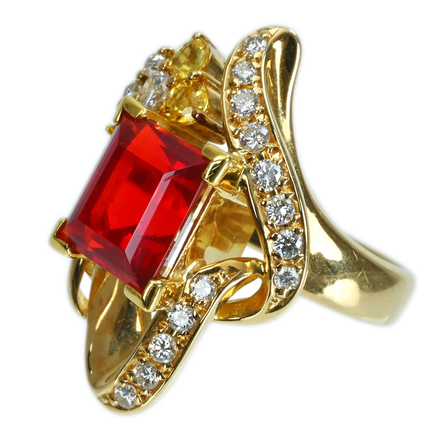 ファイアオパールリング K18YG OP2.44ct D0.38ct