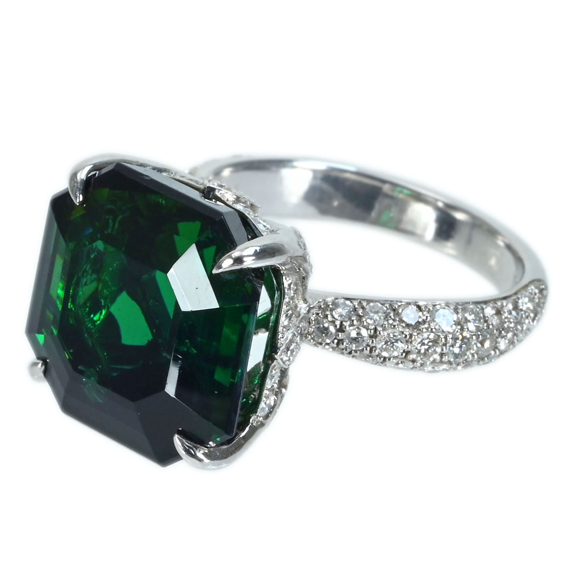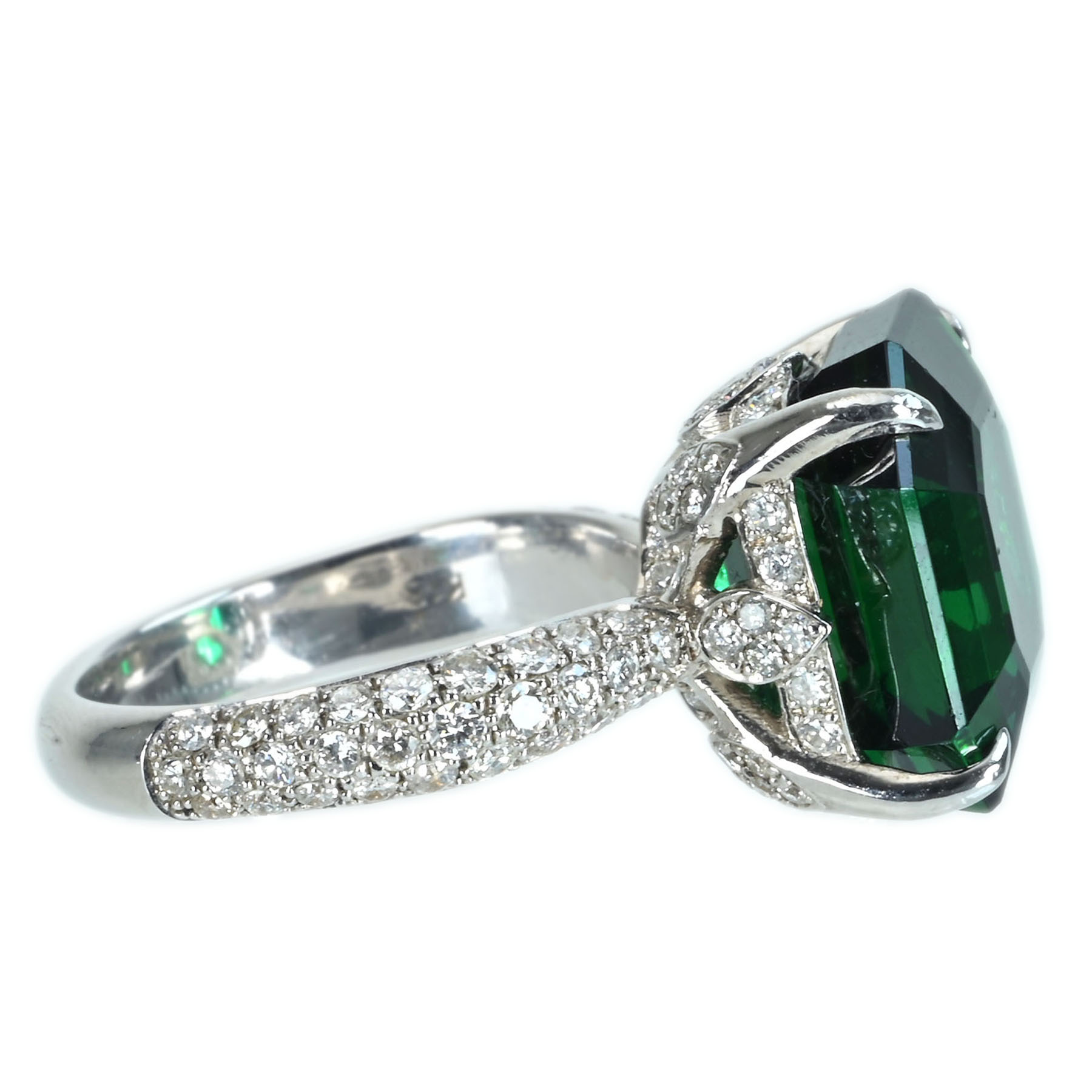 グリーントルマリンリング K18WG TR-GN13.679ct D1.30ct