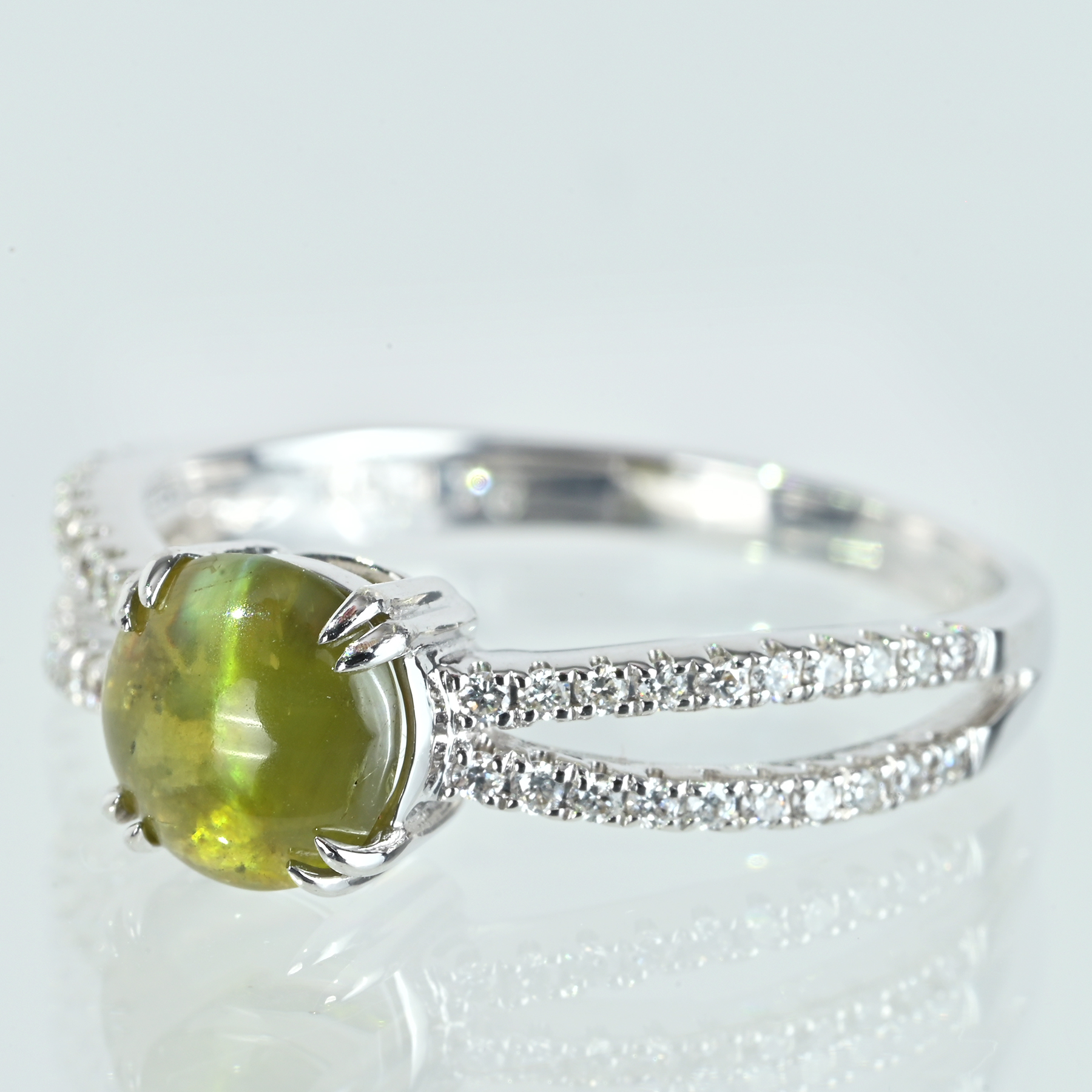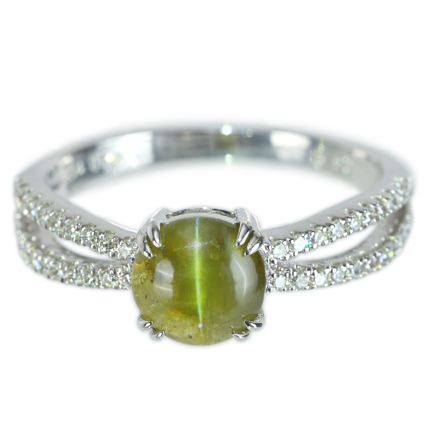 キャッツアイリング K18WG CE1.76ct D0.20ct | FoL Jewelry