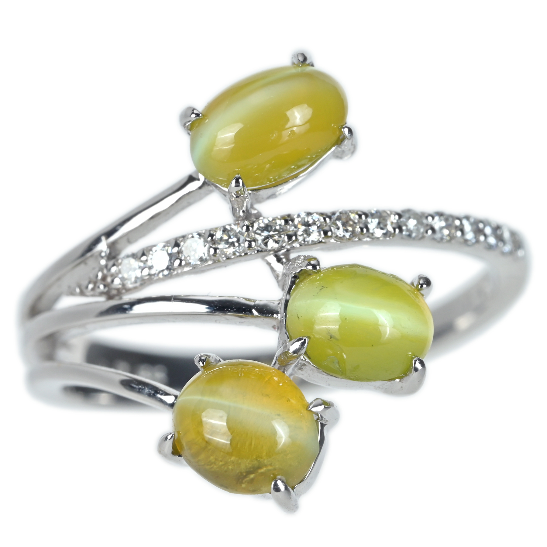 キャッツアイリング K18WG CE2.55ct D0.12ct