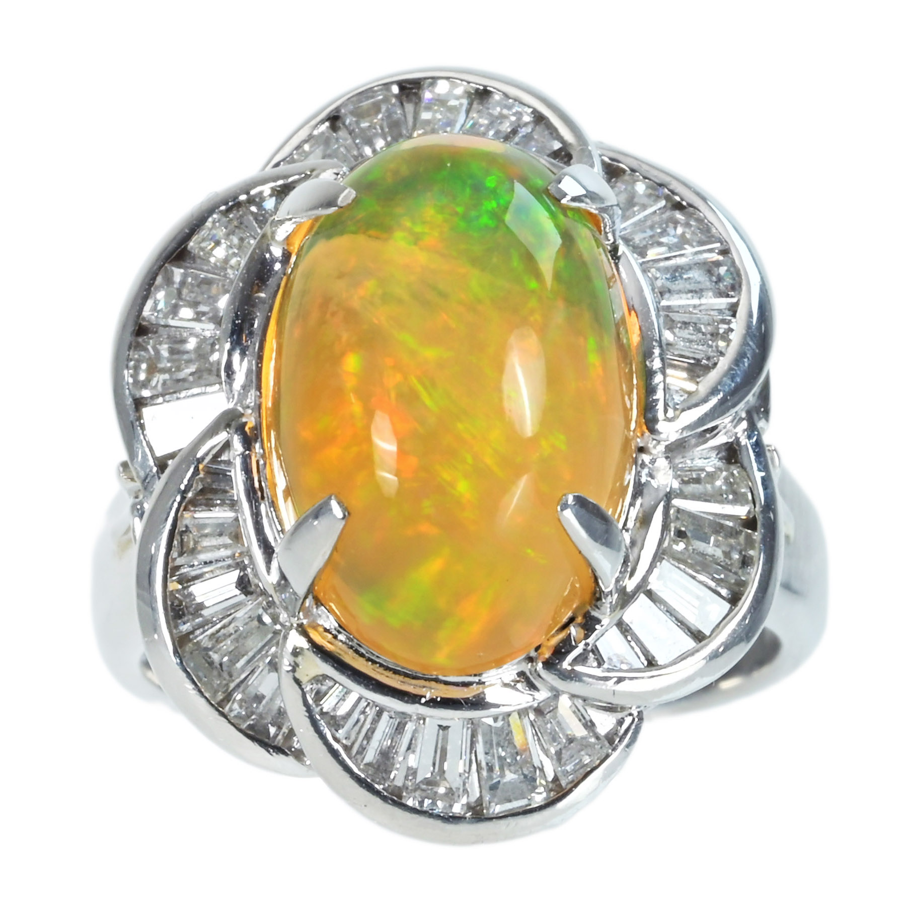 メキシコオパールリング PT900 MXOP6.27ct D1.35ct