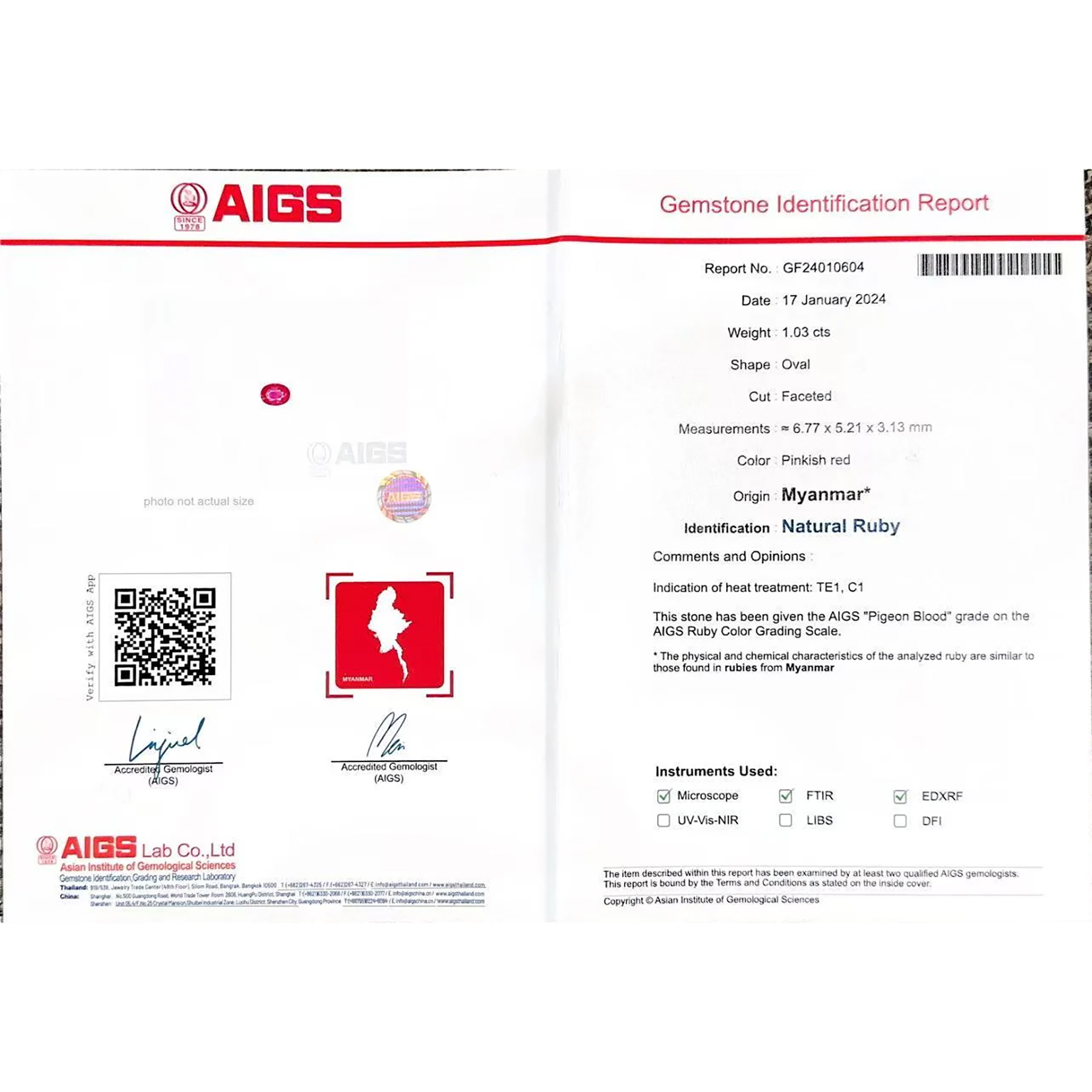 #13号, #K18WG, #Pigeon Blood, #ミャンマー産, #リユース, #鑑別書,