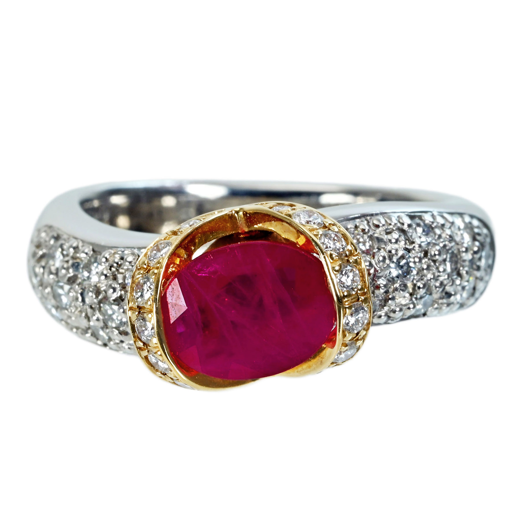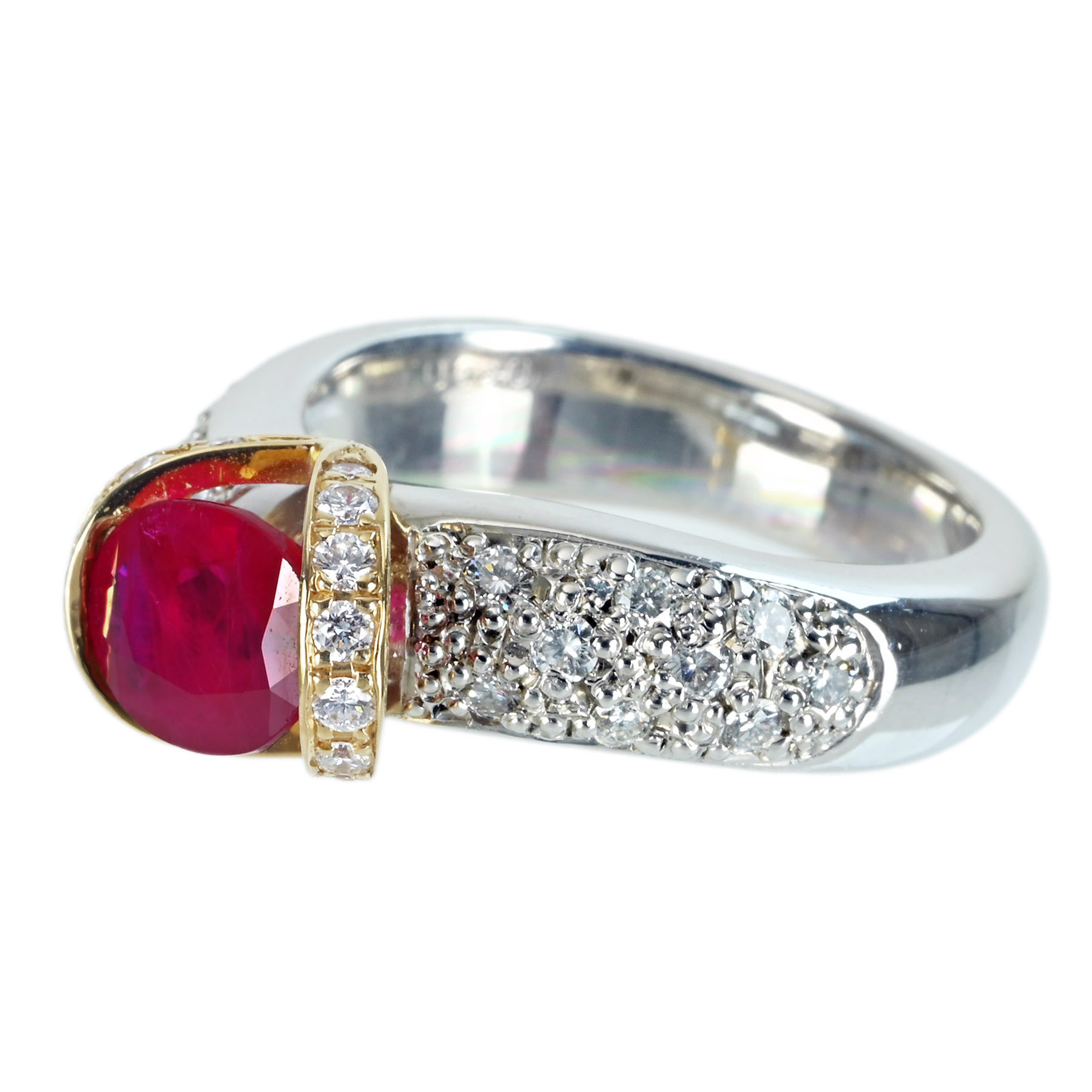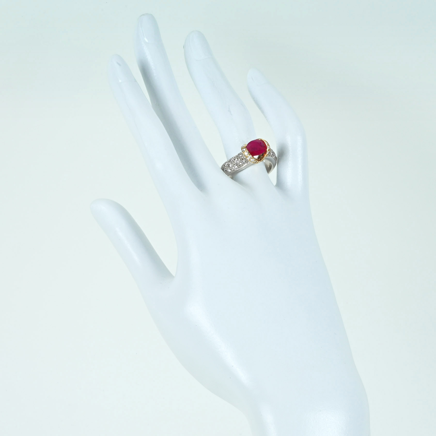 ミャンマー産ルビーリング PT900/K18YG R1.58ct D0.54ct