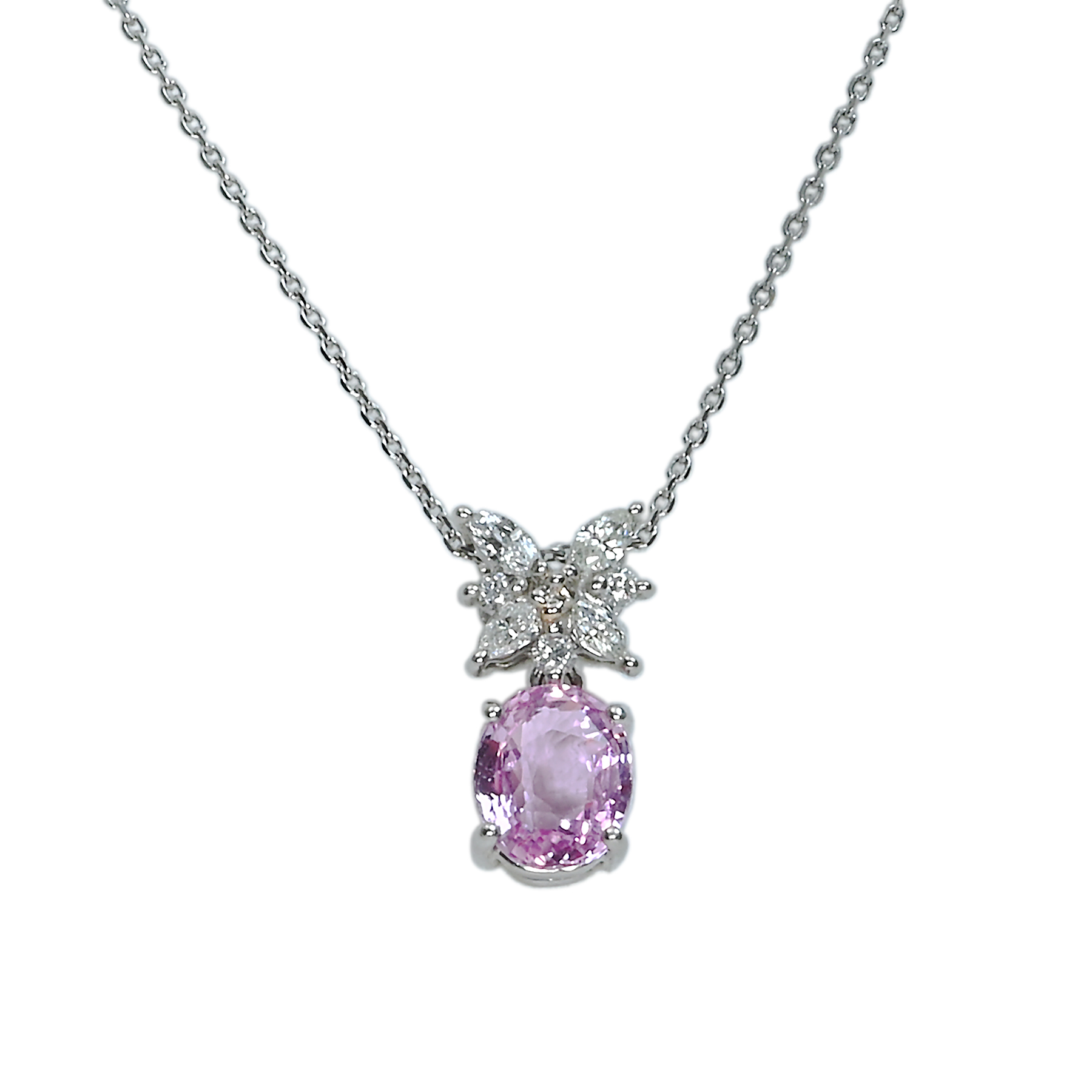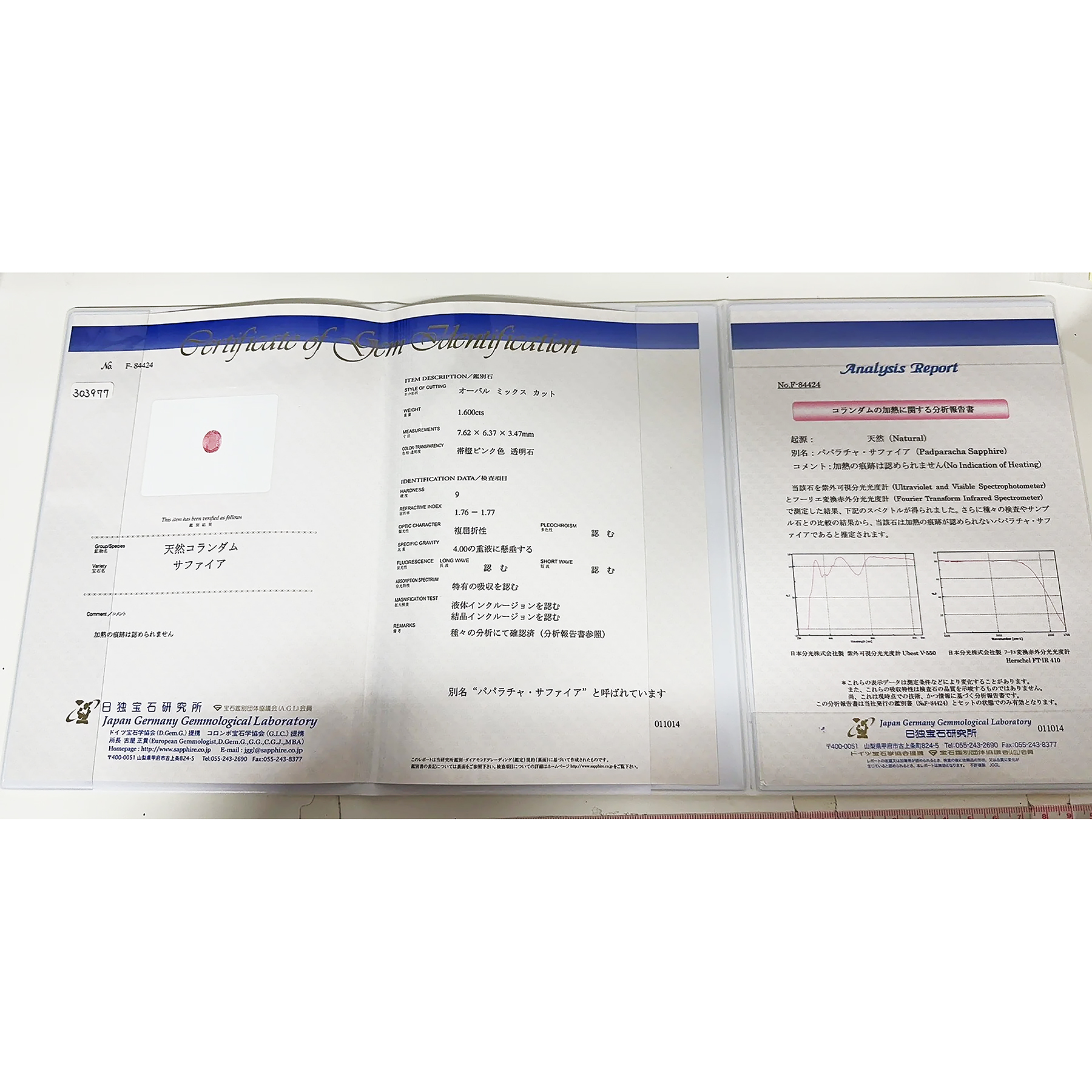パパラチアサファイアペンダント K18WG/PT950 1.60ct D0.19ct