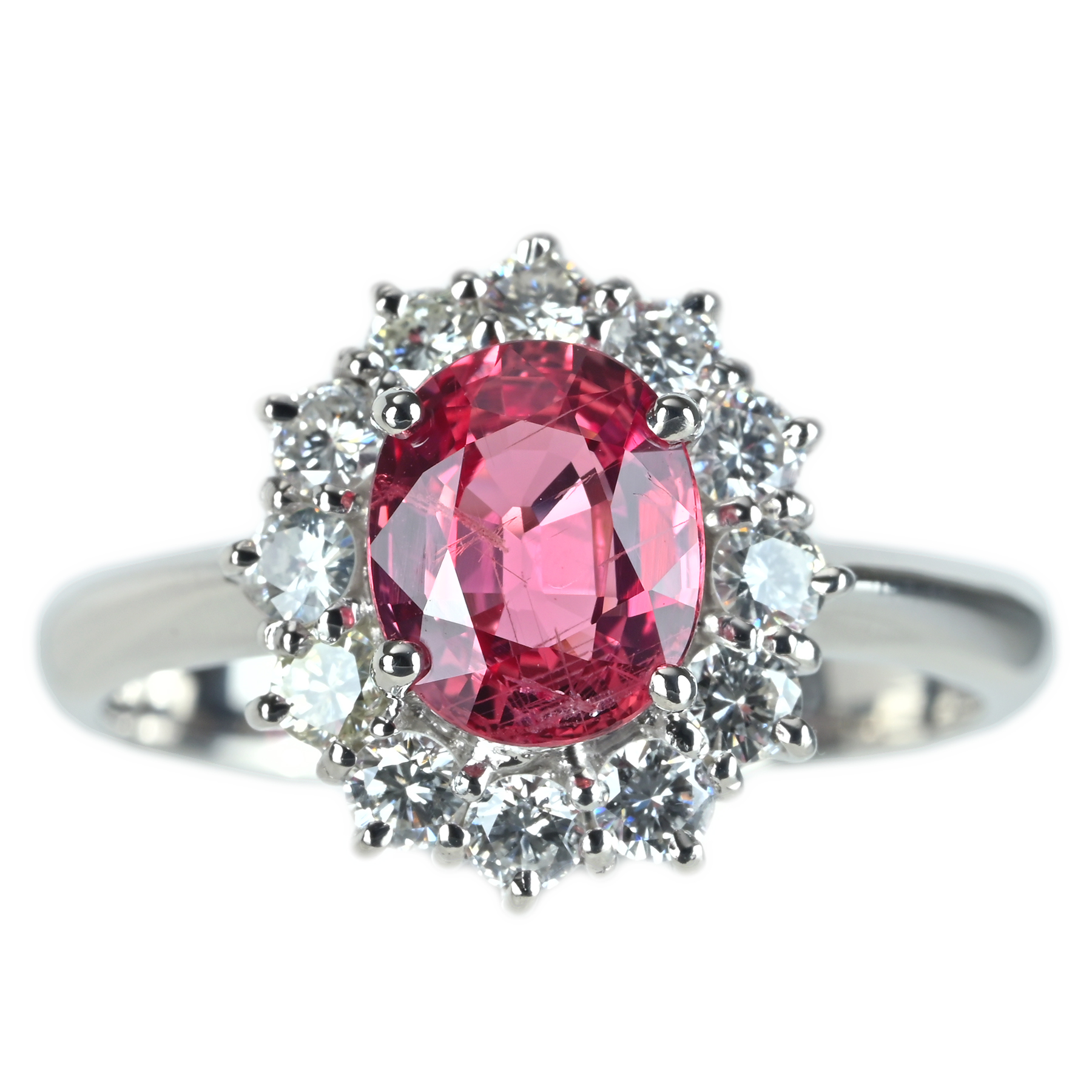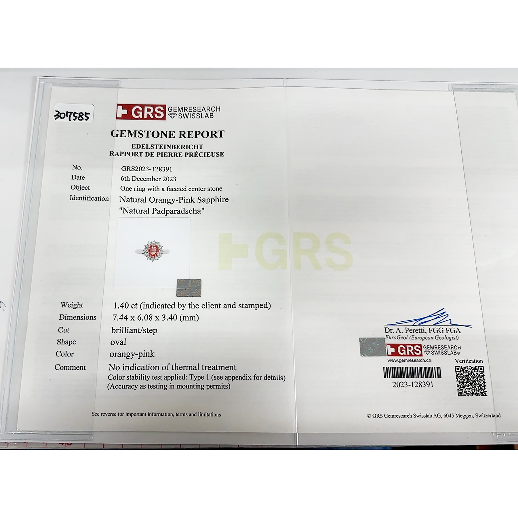 パパラチアサファイアリング PT900 PS1.40ct D0.516ct