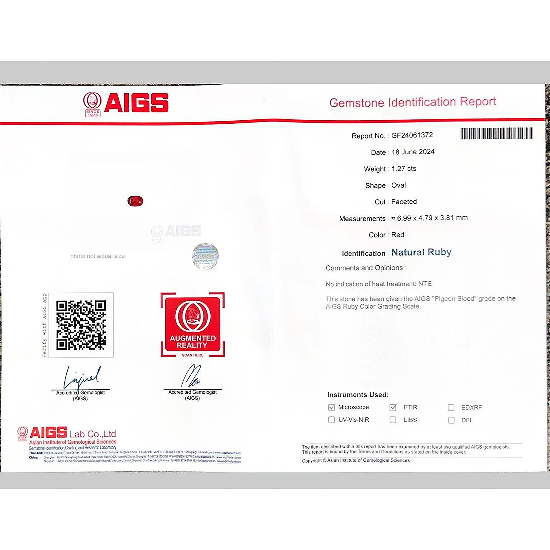 #12号, #K18WG, #Pigeon Blood, #リユース, #鑑別書, #非加熱,
