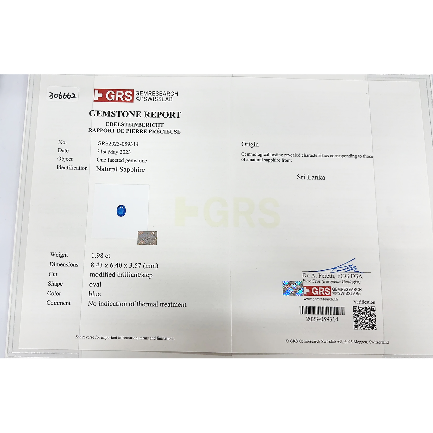 スリランカ産サファイアリング K18WG S1.98ct D0.40ct
