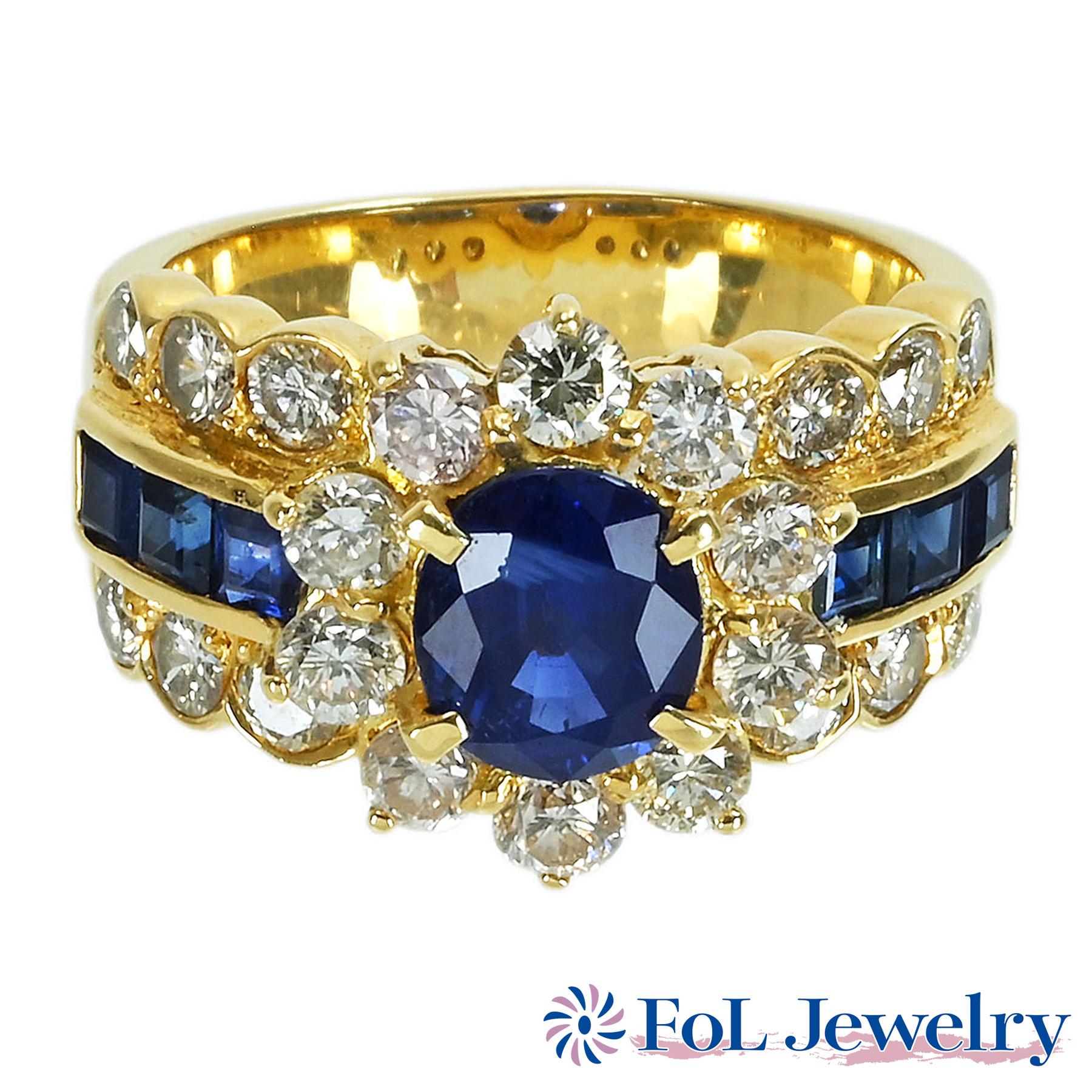 サファイアリング K18YG S1.59ct S0.91ct D1.62ct