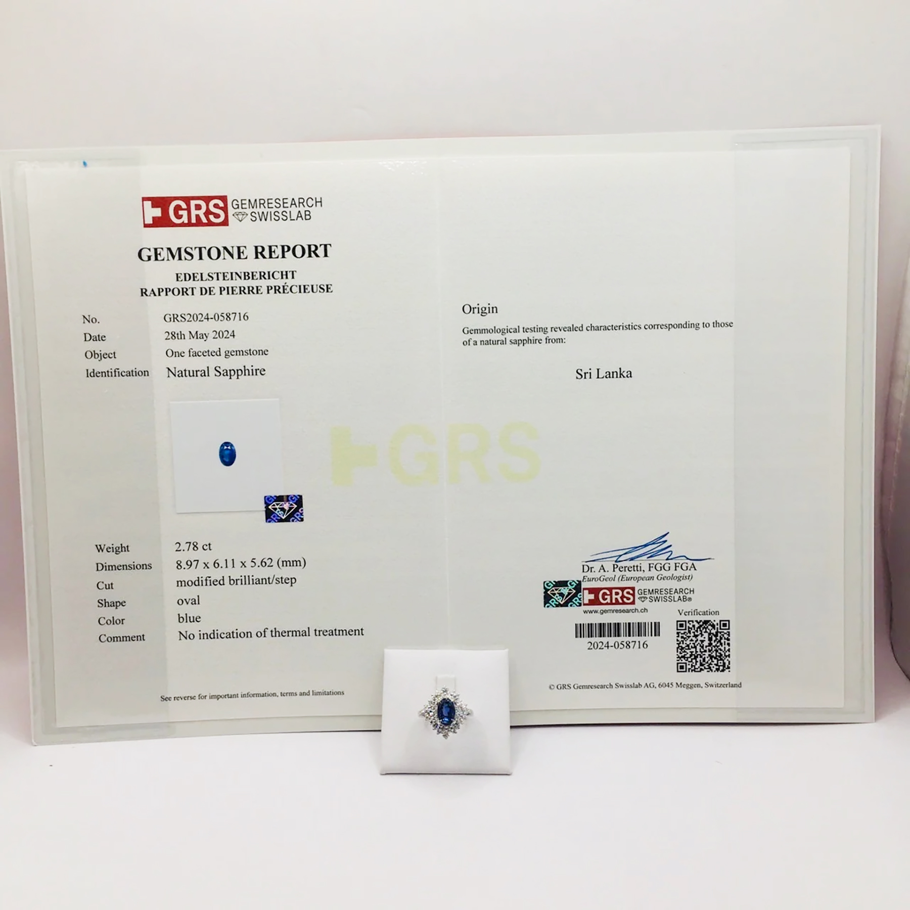 スリランカ産サファイアリング K18WG S2.78ct D1.00ct