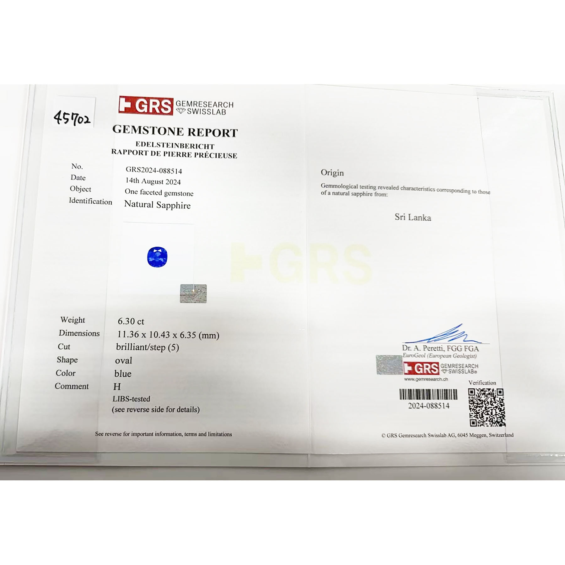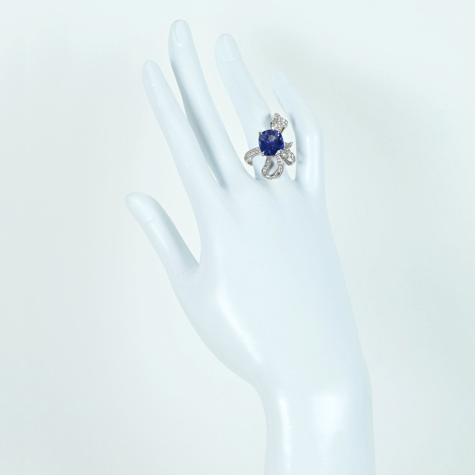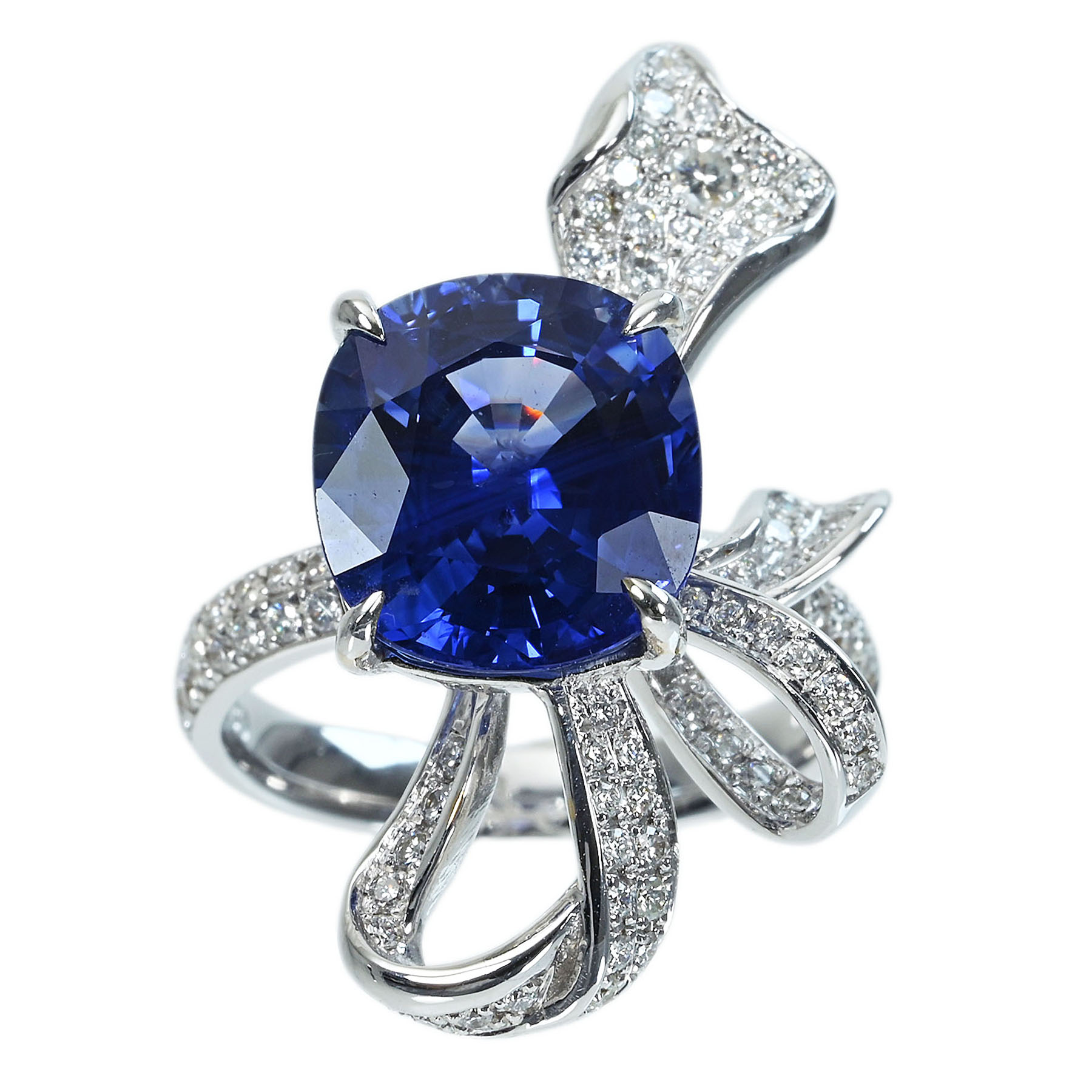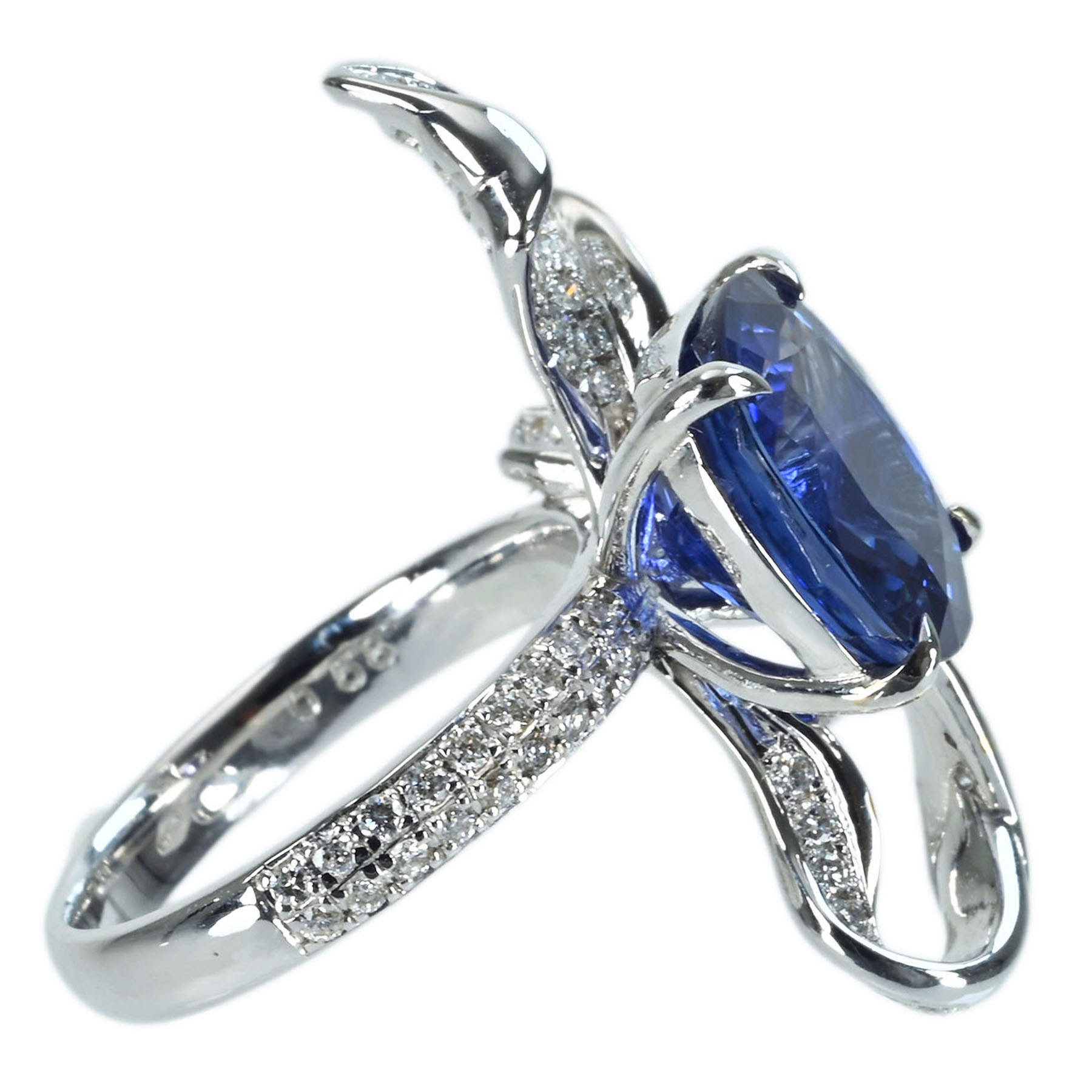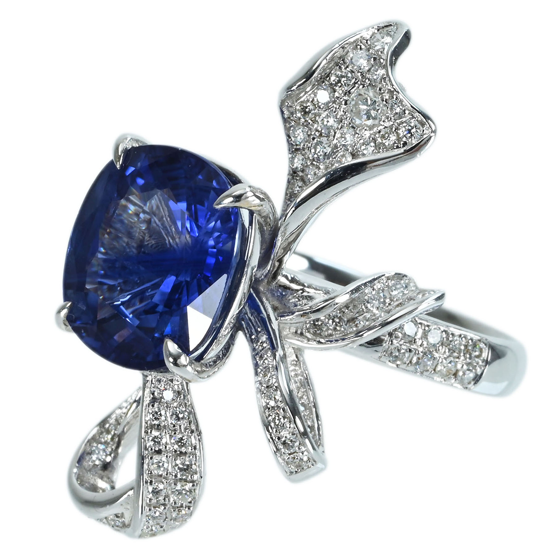スリランカ産サファイアリング K18WG S6.30ct D0.58ct