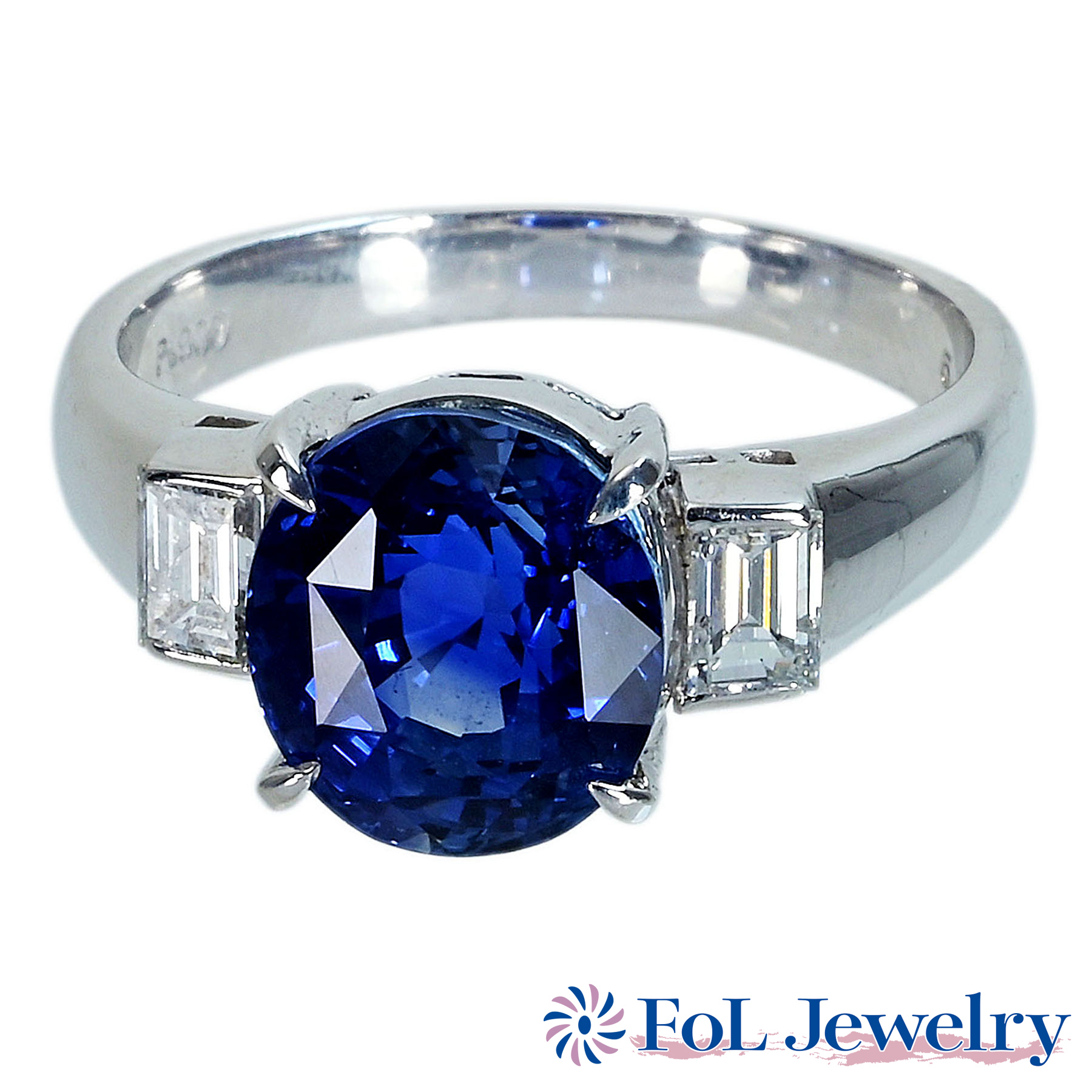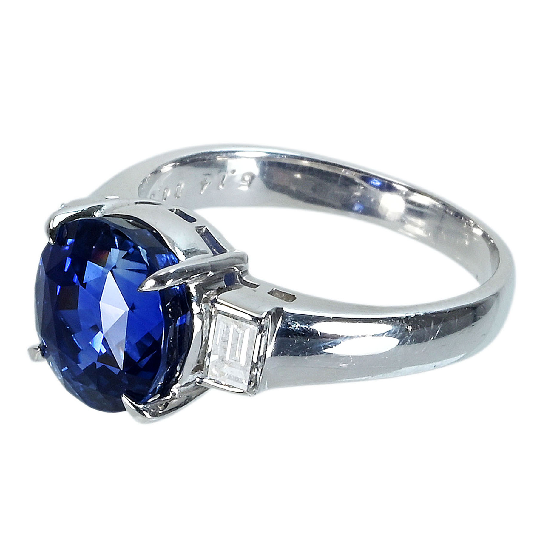 スリランカ産サファイアリング PT900 S5.14ct D0.39ct