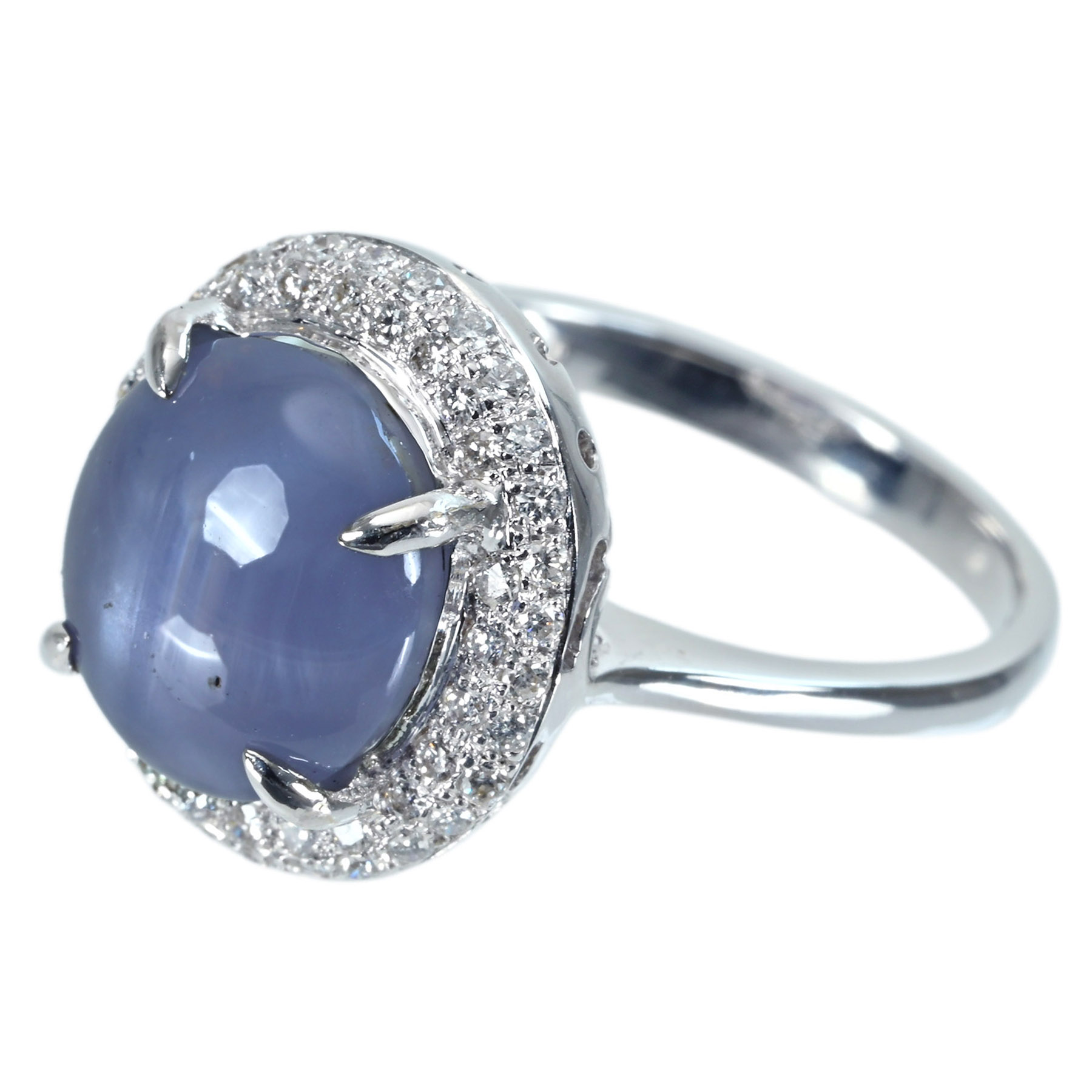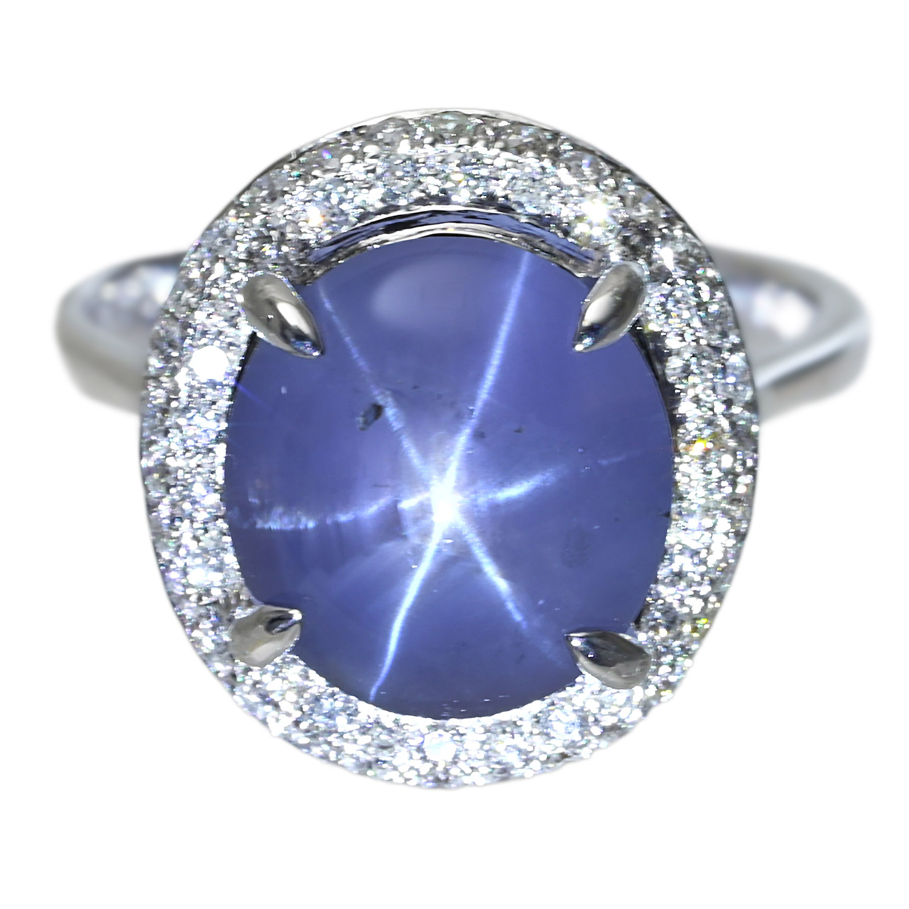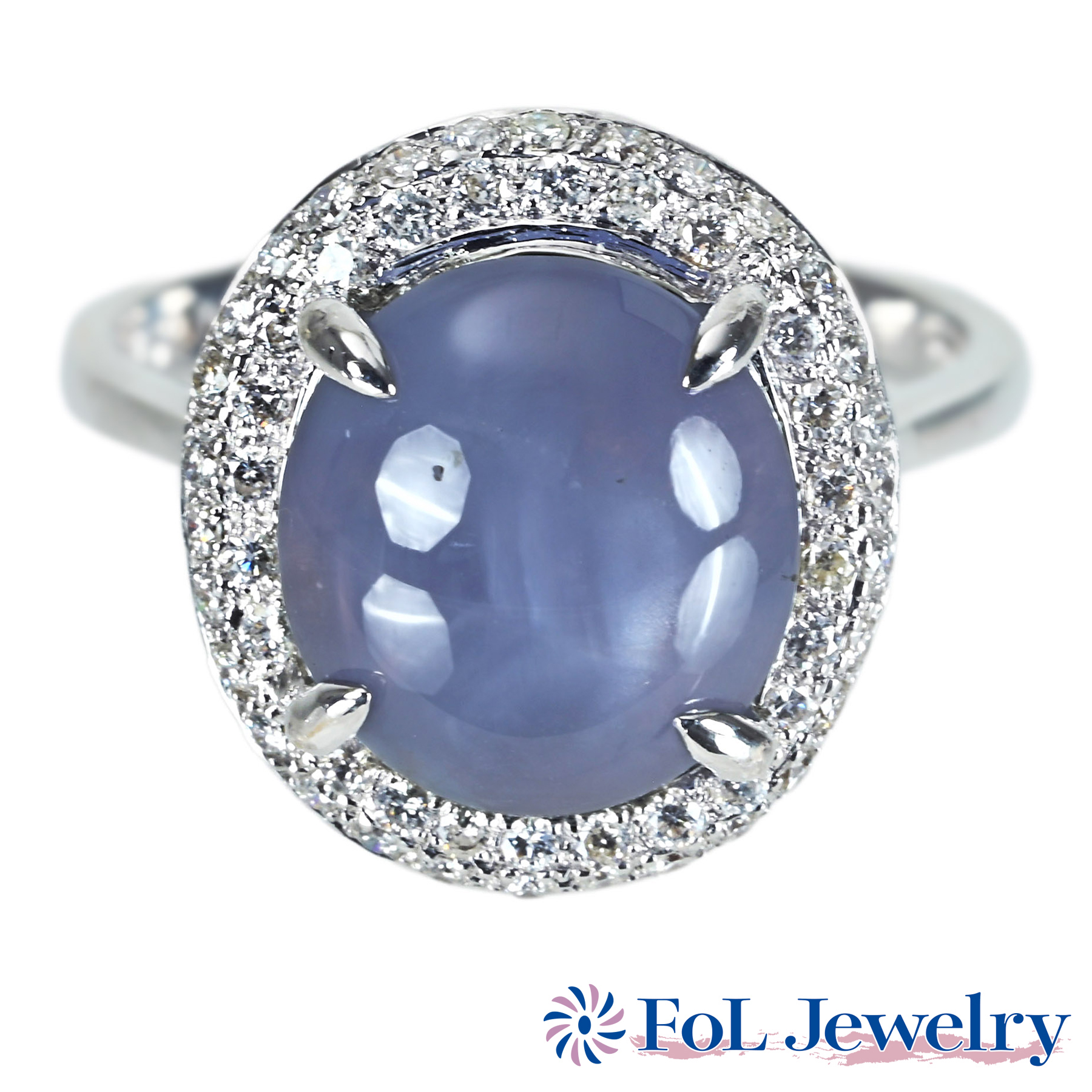 スターサファイアリング K18WG SS7.71ct D0.36ct