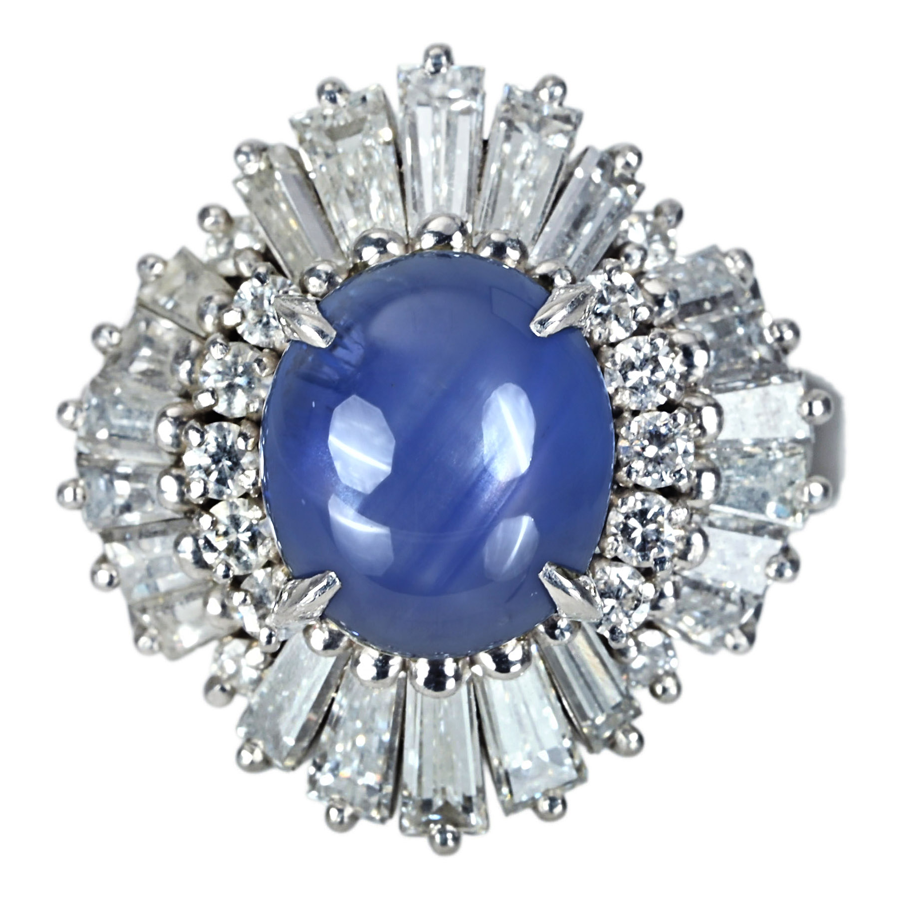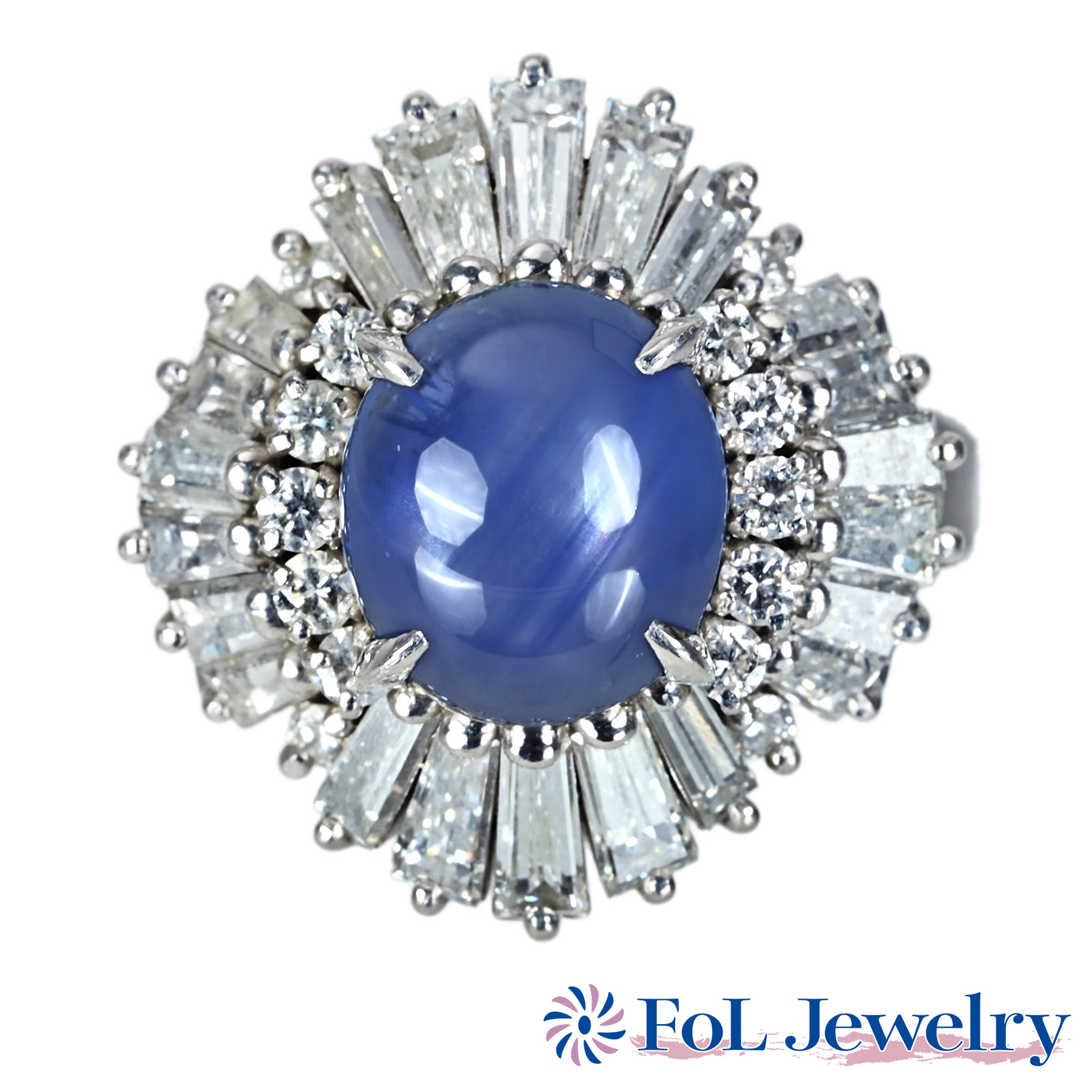 スターサファイアリング PT900 RING SS3.84ct D1.92ct ハンドメイド