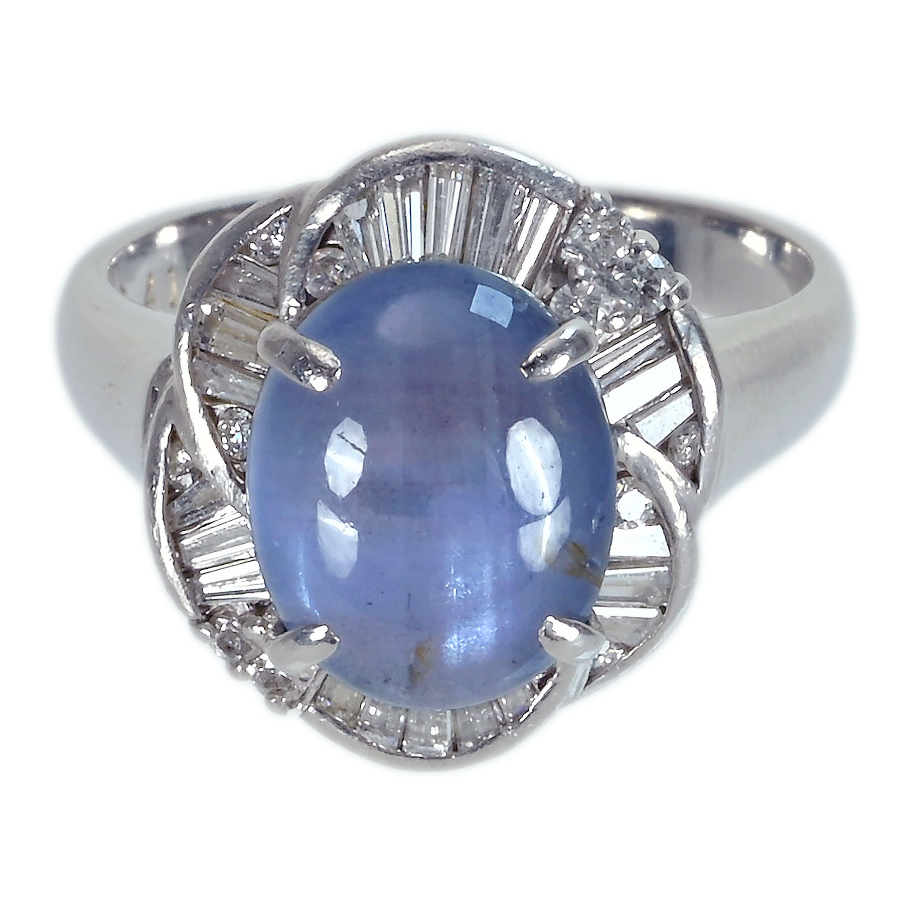 スターサファイアリング PT900 SS4.13ct D0.98ct